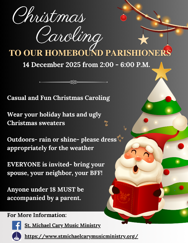 All members of St. Michael Music Ministry and their family and friends are invited for an afternoon of Community Christmas Caroling.